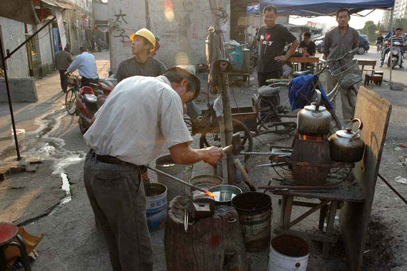 The market was full of activity and taking a side road off the main street I emerged into an open space where I found a blacksmith with his portable workshop.