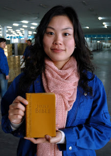 Imagine a factory printing 12,000,000 bibles every year. On the outskirts of Nanjing there is the biggest bible printing factory known to man. It belongs to the Amity Foundation, a non-profit making joint venture between the Amity Foundation and the United Bible Societies. I managed to get a trip round the factory thanks to Rev. Li who works at the YMCA on Jhu Jiang Lu. She organised me to be met at reception by Alice from Administration and she gave me all the stats. Est. 1988 selling bibles to over 70 countries, thin paper printing experts in the world, 80 million bibles printed by November 2010 (last month). There was even a bible printed in honour of the visit to the factory of Rev Billy Graham, the popular bible-thumping preacher from the USA. We then went onto the shop floor and saw printing and binding machines. Most were automated but some were still manually operated. It wasn’t quite as much fun as fabric printing because there wasn’t the noise, steam, smells but it was good. Pallets of bibles lined every walk way, some completed and awaiting despatch and some waiting by the binding machines. Some of the bibles were in languages I couldn’t work out. As well as bibles there were diaries and children’s books piled high on pallets. Alice explained that you didn’t need to be a Christian to work there but it helped! Certainly a lot of people had been converted since taking up employment. I was particularly interested in the Braille bible produced in 26 volumes on thick brown paper by a small machine. The Braille department is run by a blind man who has, since reading the bible as part of his job, found Christianity. It seems it’s catching at Amity Printing! An hour later I spotted my driver loyally waiting for me in the car park. “God bless you” Alice said “And to you”.