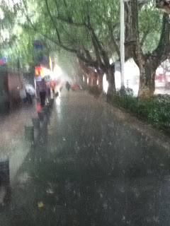 The end of the summer is nigh – the heavens are opening and dispensing their contents onto the people of Nanjing. It was not a good day for a gentle stroll for lunch today.