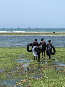 The beach stalls battled for my business but I only sat once and had one bottle of cold lemonade. The few people on the beach were in the shallows with and without inner tubes.