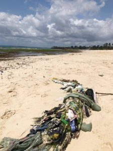 Sadly the beach is not clean, there is broken glass sticking out of the sand and discarded plastic and large tangles of fishing nets and flotsam and jetsam.