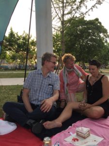 ck people into buying me a present – I only wanted to have a picnic on the South Bund. The invitation worked and people came. We had 6 nationalities and lay on the grass watching the ships go by, drinking wine and chatting and laughing.