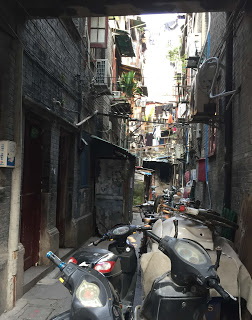 Laoximen is a tremendous place, full of old lanes and fantastic communities its lanes full of little businesses like pavement barber shops, mending workshops, corner shops and fruit and veg markets which line the main street. Here fish flap about and struggle to breathe in the shallow water of the washing up bowl they’re held in until they get chucked unceremoniously into a plastic bag and swung back and fro down the lanes until they gasp their last.