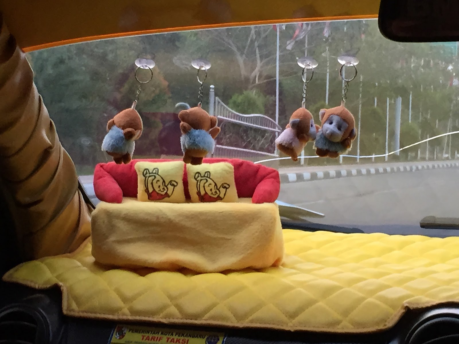 The Sumatran tiger is critically endangered and this summer I spent a couple of weeks setting camera traps to see how many of these magnificent creatures are still alive. Pekanbaru is one entry to Sumatra and from KL it’s only a 40 minute flight. But you cannot imagine a place so different to KL with it’s shiny buildings and affluence. Pekanbaru is a miserable place, like a boil on a beautiful face. In fact the only thing I liked about Pekanbaru were the yellow taxis. How can you not be happy when the driver has created a living room on his dashboard complete with teddy bears and a sofa.