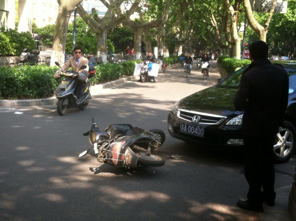 And I wonder why Nanjingers tend not to tidy up after their accidents – they always leave the vehicles across the road, even when it blocks the traffic completely.