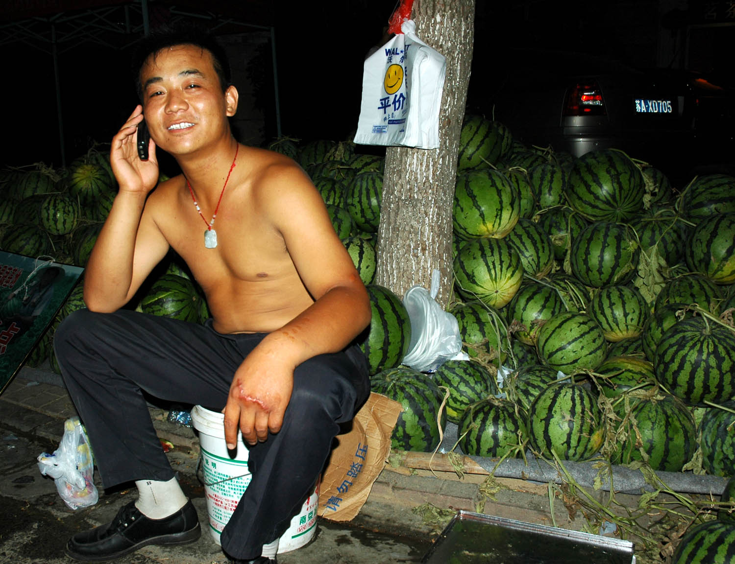 It’s watermelon time at the moment and every street seems to be piled high with these green beauties. I have never been a big fan of watermelon – too much water, too many pips and not enough flavour but I find myself buying them just because they look so good when you cut them open. The farmers bring their stock, lay it out on the pavement and then sleep next to it.