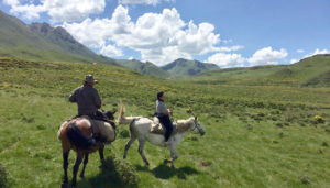 The afternoon saw us get on the horses again and head downhill through the most beautiful wild flower meadow I have ever seen. It had been fenced off from the yaks, I think because the ground was pitted with holes – a sure recipe for broken legs.