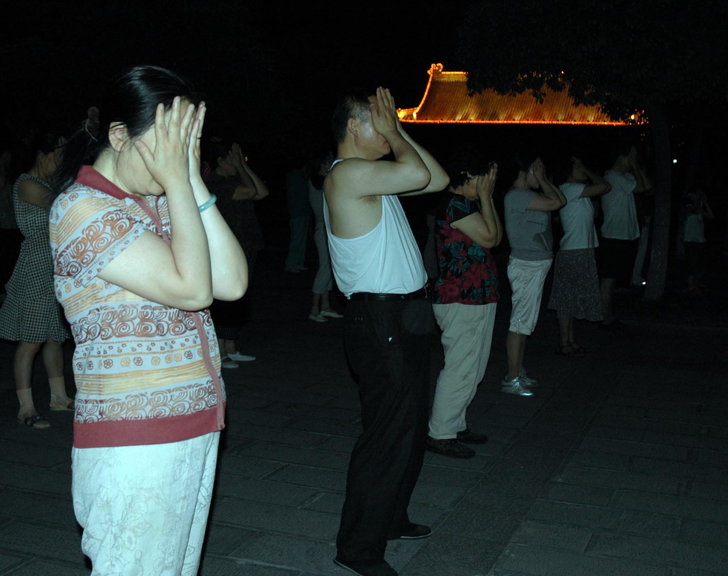 The whole park was alive with people enjoying the relative cool of the evening air; some sitting around chatting, children paying on skateboards and rollerblades, some young children with illuminated shoes which squeak and flash with every step, groups of middle-aged people doing an intriguing kind of face slapping aerobics, and another group of people chanting while chapping rhythmically 1,2,3…. 2,2,3…. 3,2,3.… 4,2,3….5,2,3…. 6,2,3 then all leaping up into the air and cheering when they got to …7,2,3.