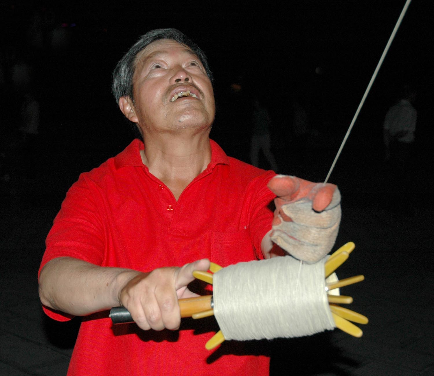 My old No. 27 bus route all the way to and from the centre is getting a bit boring and so yesterday I thought I’d try the No. 17 to the end of Yudao Jie and then the new Metro line to the centre. Leaving the office lateish I got the Metro to MingGuGong stop and came up the escalator into the warm evening air. Looking across to the “Imperial Palace of the Ming Dynasty” where I was to catch the bus, I could see lights in the night sky. What were these strange bright flying objects high above?