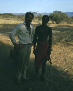 Toward the end of August we travelled back toward Nairobi. On the way we stopped near Thika and saw the brilliant red flame trees in bloom. In Nairobi we visited the game park and watched lions from the vehicle. That evening there was a reception with some of the expedition’s sponsors. Several people celebrated rather too enthusiastically.