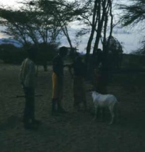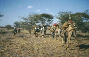 Eventually Pauline became ill during one of the marches. When an Italian Land Rover passed on the track we persuaded them to give us a lift to South Horr. They drove us there in about an hour and a half. The mission allowed us to stay, though at first we slept outside under a veranda with very little bedding while rain fell through the night.
