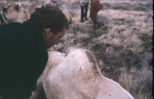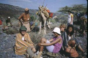 The next day the camels arrived at camp, but the camel men were unhappy with our ropes. Nothing seemed to move quickly. In the end we did not leave until early afternoon, walking eleven miles to the camel men’s home so they could fetch proper rope. Some of the group were eventually given a lift in a lorry. Wendy had to be picked up because she was feeling ill.