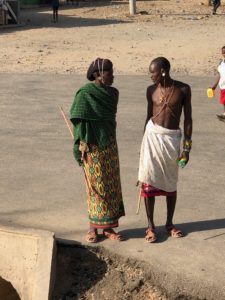 The more north we got, the more tribal people appeared on the side of the road and in towns where we stopped. In Merille there were many such people and here we picked up people in bright costumes who had been dancing at a festival there.