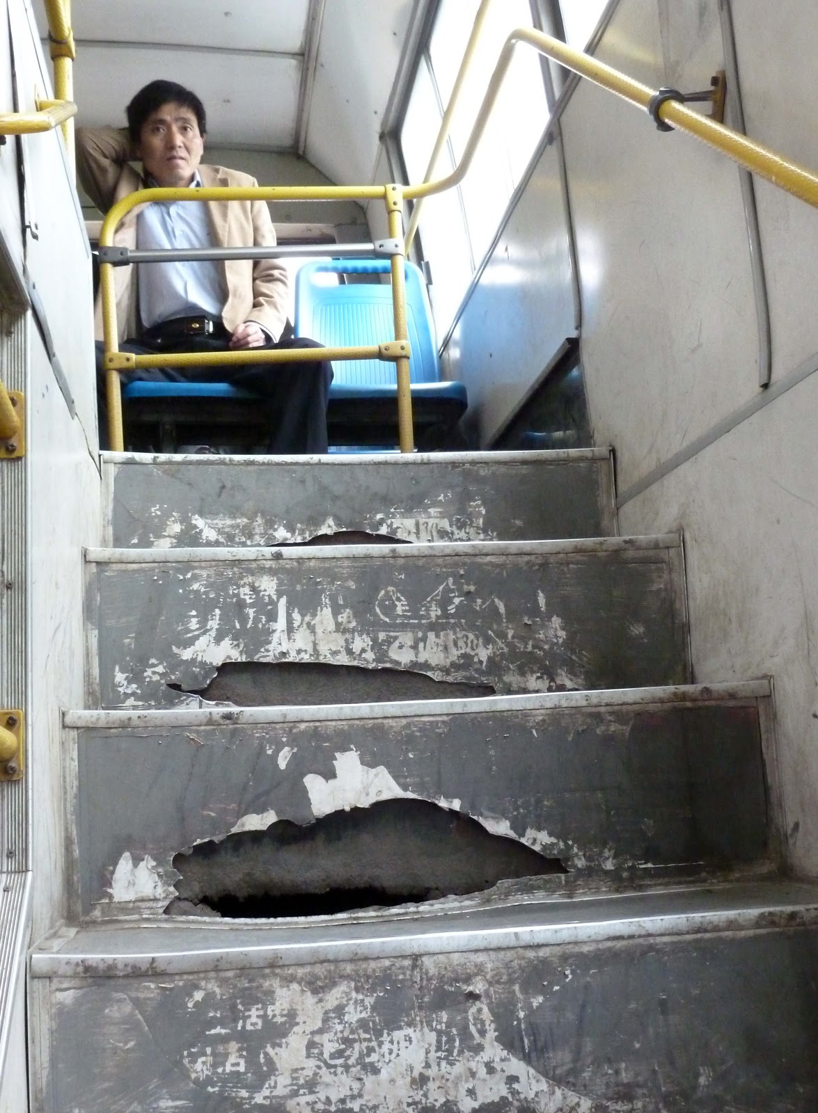 I was a bit late for the book club as I tried a new route to Yulan Villas. I thought I’d try to get the Metro and then the bus. However, the 150 bus went the wrong way and I ended up walking miles.I don’t know how old these buses are but they don’t don’t very robust. The staircase of his one was barely hanging together.