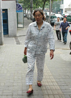 going shopping and down at the subway in their pyjamas. I ventured out with my camera recently and quite quickly found several people wandering around in their pyjamas. I began to wonder why and asked around to see if anyone had any ideas. I found an article in the China Daily newspaper by Raymond Zhou who suggests that this habit has developed out of the cramped housing conditions in which some people live. He believes living in such close quarters helps blur the line between private and public space. Middle-aged women treat their local streets as an extension of their houses and feel comfortable sauntering onto the street in their nightwear.