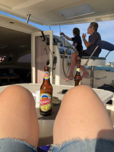 I have been trying to find someone with a boat ever since I got here and at last I did it. Mike generously said I could go aboard his catamaran and it turned out that we were going to have a race.