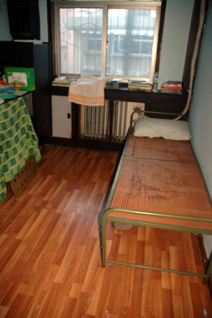 I was surprised that the bathroom door had plain glass but he explained that it was not plain glass but that there was no glass at all. The light fittings were hanging off. The light in the bathroom was broken as was the one in his bedroom. There was no mattress for my bed, no curtains and the Buddhist temple next door bonged their bells on the hour all through the night.