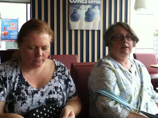 I bought a few books and DVDs and a new large jar of Coffeemate all for £2. I looked around for Sarah and Lynn but they had inadvertently gone and left me! Feelign terrible, they got Sarah’s driver, Michael, to turn around and come and pick me up. Red faces for Lynn and Sarah. But they made up for it and we all went to Dairy Queen where they feasted on ice-cream and me, trying to be less fat, had a smoothie.