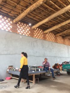 The temperature in the summer is great for groing grapes but a challenge to live in so the houses have open brickwork near the eaves which keeps the courtyard cool and a large day bed to fit an entire family. I got invited into one such house and the temperature inside was noticeable cooler.