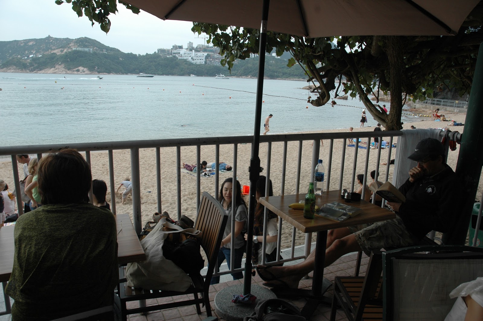 Next day – refreshed – we got a bus to Stanley. Jim did a 17 mile run while I sat in the shade, read my book and wandered around the new Stanley shopping mall. After a spell of sunbathing (in the shade) on the nearby beach, Jim followed up his run with a half hour swim (inside the shark nets) and then a little light shopping in Stanley market.