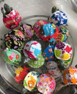 Often you will see beautiful tight rose buds dipped in glitter. What could be more beautiful than a rose bud? This desire to beautify nature reached new ehights when, this weekend I popped into the flower and bird market near FangBang Lu and saw the turtles.