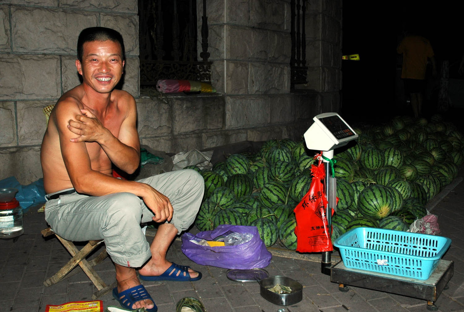 It’s watermelon time at the moment and every street seems to be piled high with these green beauties. I have never been a big fan of watermelon – too much water, too many pips and not enough flavour but I find myself buying them just because they look so good when you cut them open. The farmers bring their stock, lay it out on the pavement and then sleep next to it.