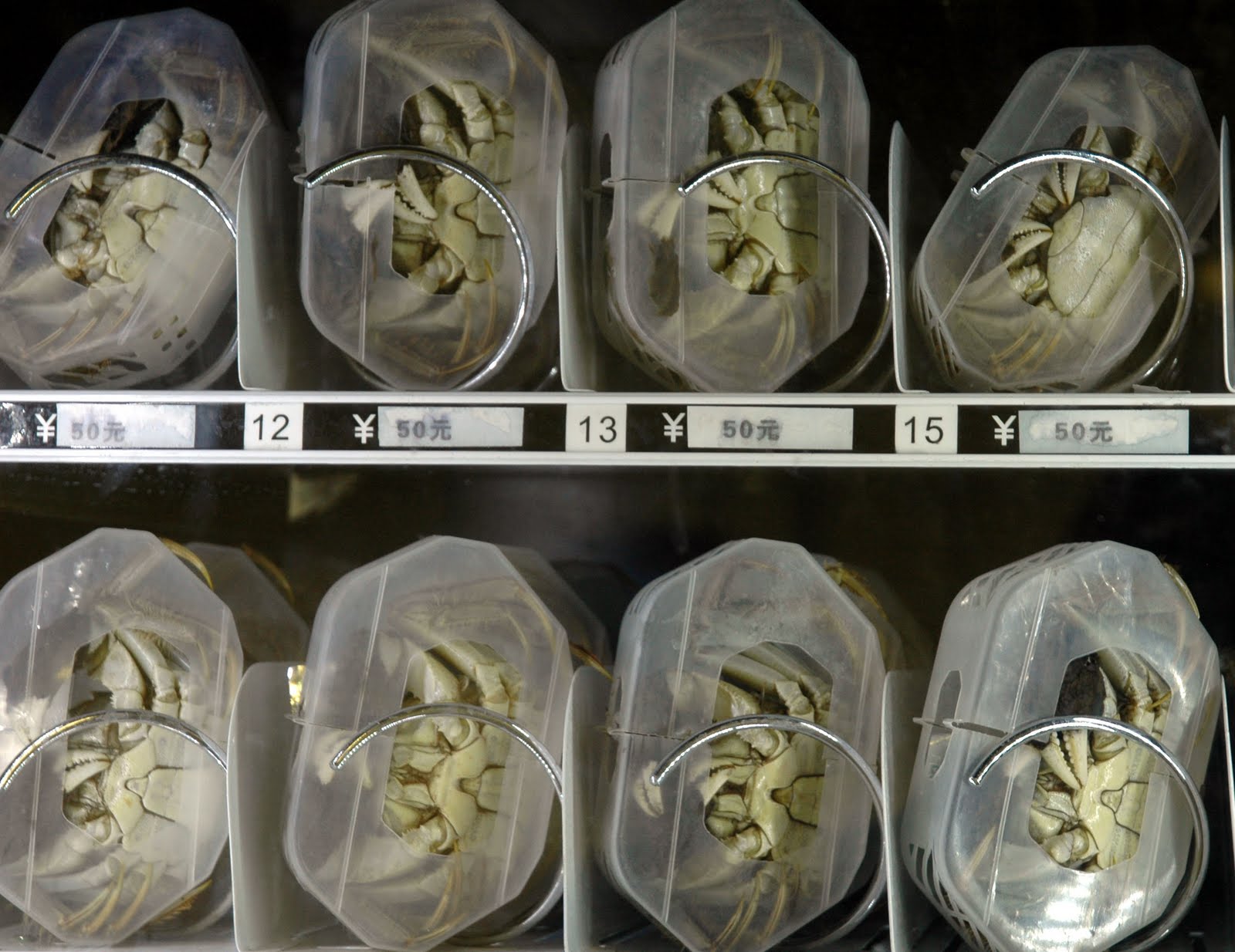 It’s crab season here in Nanjing and every shop has crabs on display, crawling around slowly in buckets or tied with elastic bands to stop them clawing their way to freedom. It makes sense to sell crabs to people who are heading home on the metro and looking for something easy to get for their tea. Mind you I was surprised to see crabs for sale in vending machine – dead I think – for 50 yuan each (£5). What will it be next? Puppies?