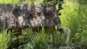 One of the fields of grass had been partially cleared to make way for five hives for the young mothers to farm. Young mothers are an important group because they have often missed out on an education and have limited economic opportunities compared to men. Many NGOs support young mothers for this reason.