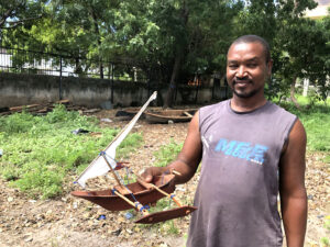 It’s hard to find anything to buy here which is not tourist tat and I was keen to have something unique and meaningful to take home when my time is done. When I am sailing we are often in the same area of the fishing boats and canoes and I watch as they sail past. These rudimentary vessels are usually carved out of a single piece of wood (Mninga) with a sail made out of whatever they can get their hands on, and often with out-riggers.