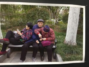 One had shots of people on a pedestrian bridge in Guangzhou and acted as a social commentary on the numbers and origins of workers in the city. There were many Africans on display reflecting the huge trade in goods between China and Africa with a huge number of ships at the port bringing and taking people as well as goods. The colours of the African clothes are a welcome change to the drab of the rest of us.