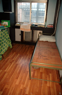 I was surprised that the bathroom door had plain glass but he explained that it was not plain glass but that there was no glass at all. The light fittings were hanging off. The light in the bathroom was broken as was the one in his bedroom. There was no mattress for my bed, no curtains and the Buddhist temple next door bonged their bells on the hour all through the night.