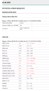I texted Mimi upstairs to come and she brought a home testing kit for malaria. I had to stab my finger to get some blood and it took only 15 minutes for the little device to show three stripes indicating that I had indeed got malaria.